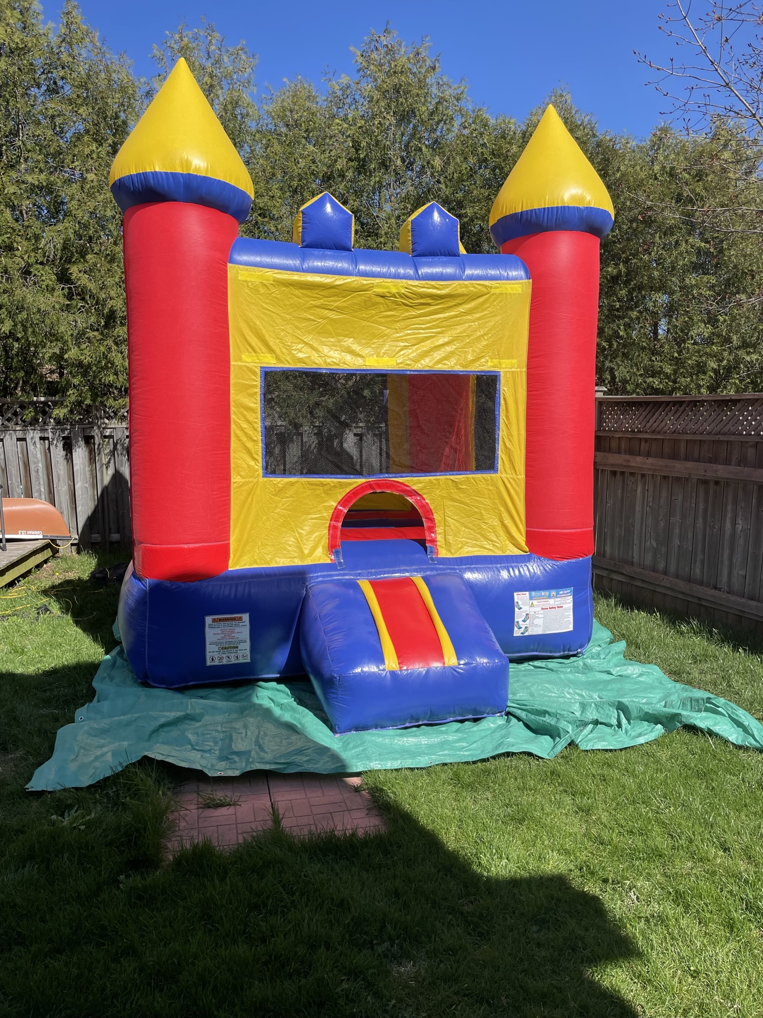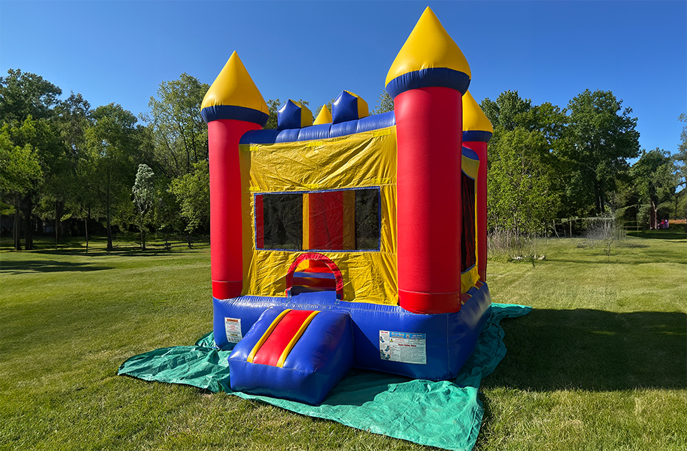 The "Carnival Bounce Castle" is a vibrant and exciting attraction that brings the magic of the carnival right to your backyard. With its bright colors and spacious interior, kids can jump, play, and imagine themselves as carnival performers, creating endless fun and laughter. This bounce house is not just a play area, it's a miniature festival of joy where every leap feels like a ride on a merry-go-round.