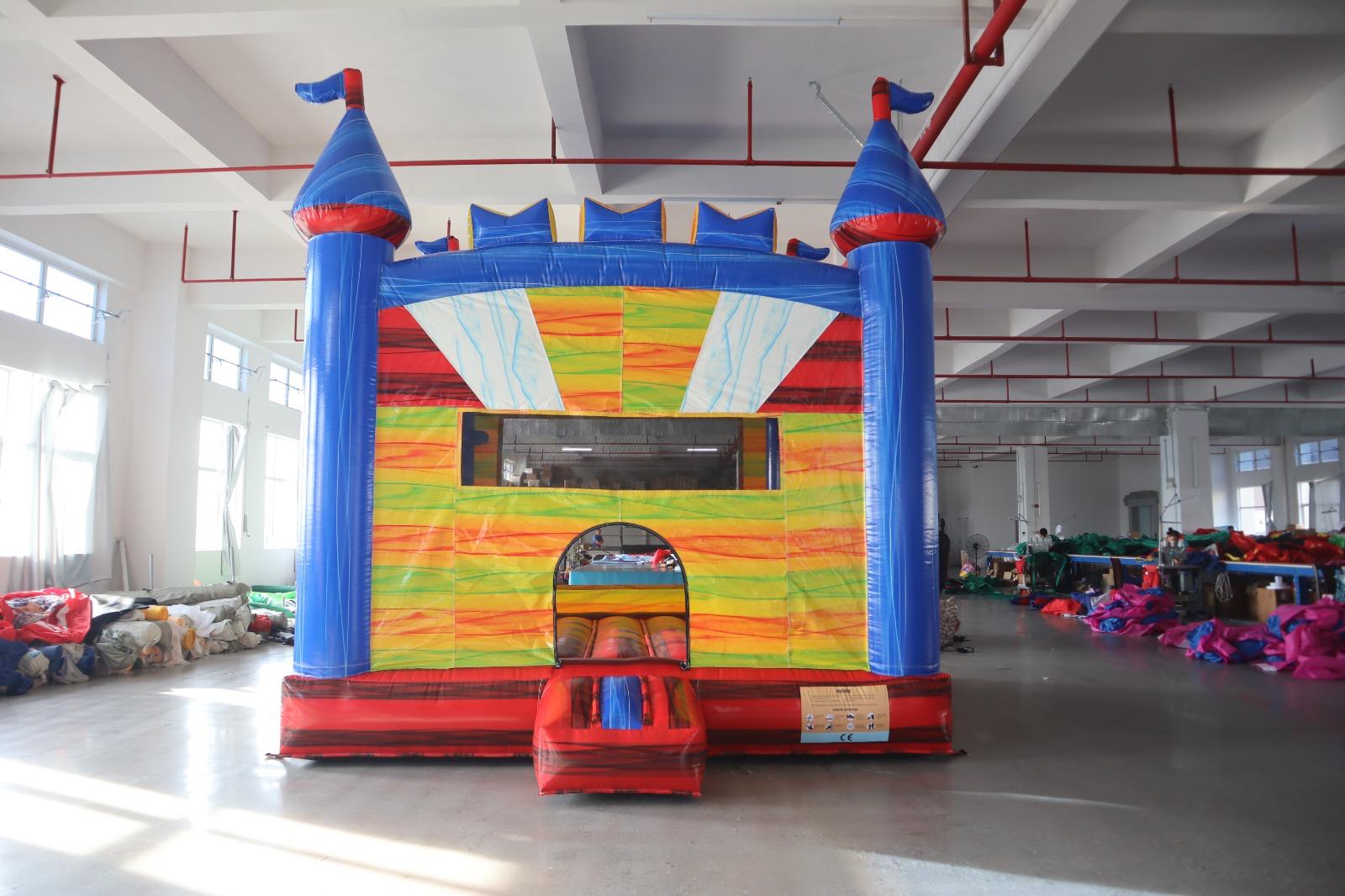 The "King Arthur" bounce castle is a bold and inviting playland, featuring the classic colors of a knight's valiant crest. Its towering spires and robust walls invite children to a realm where they can jump and rule as benevolent monarchs of their inflatable kingdom. The bright primary colors stimulate the imagination, turning every bounce into a chapter of their very own roundtable adventure. Here, every child is the hero of the castle, mastering the art of play with every joyous leap and bound.